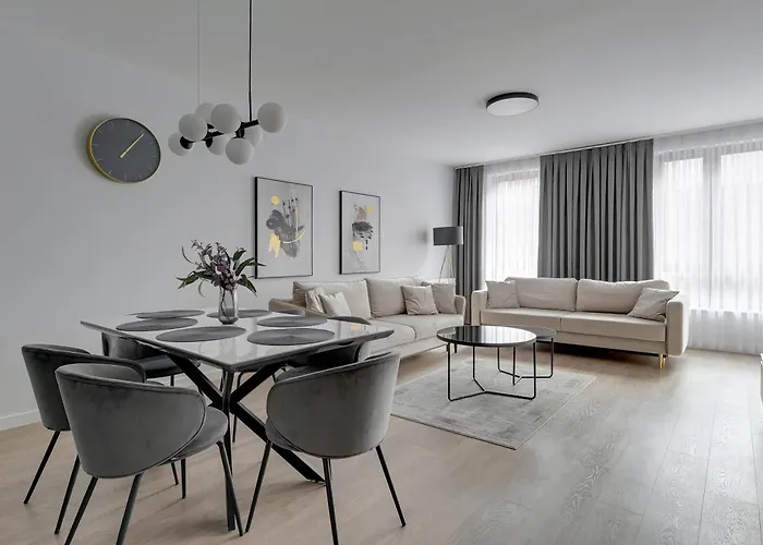 Disfruta de tu estancia en el Old Town Sadowa Apartments, situado en el centro de Gdansk, a aproximadamente 1 km de la Basílica de Santa María. Este apartamento de 51 m^2, situado a un par de minutos en coche del Museo Nacional, cuenta con prácticos servicios de limpieza como una lavadora a disposición de los huéspedes.